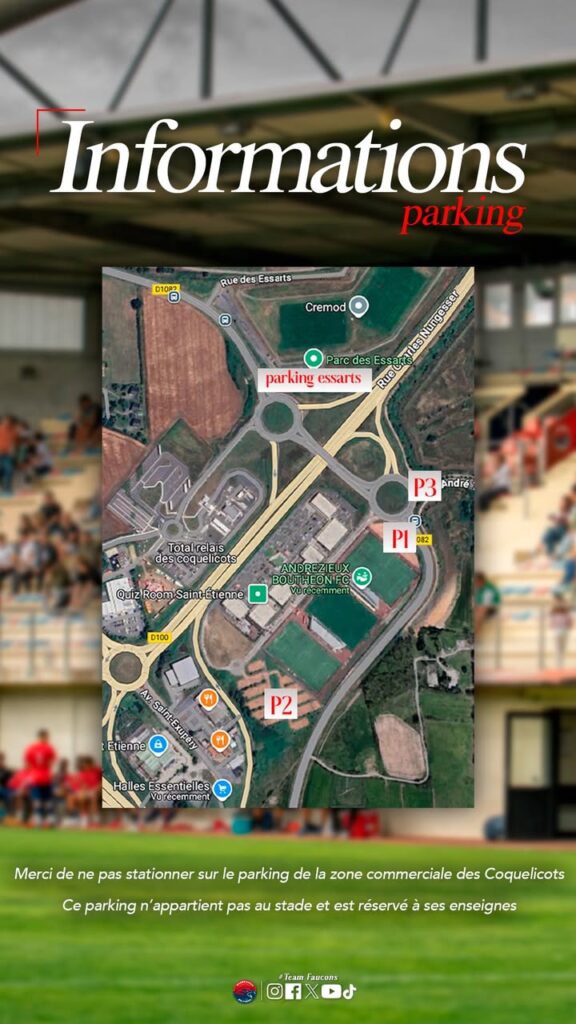Parking : merci de ne pas stationner sur le parking de la zone commerciale des Coquelicots, réservé exclusivement à ses enseignes et non rattaché au stade.