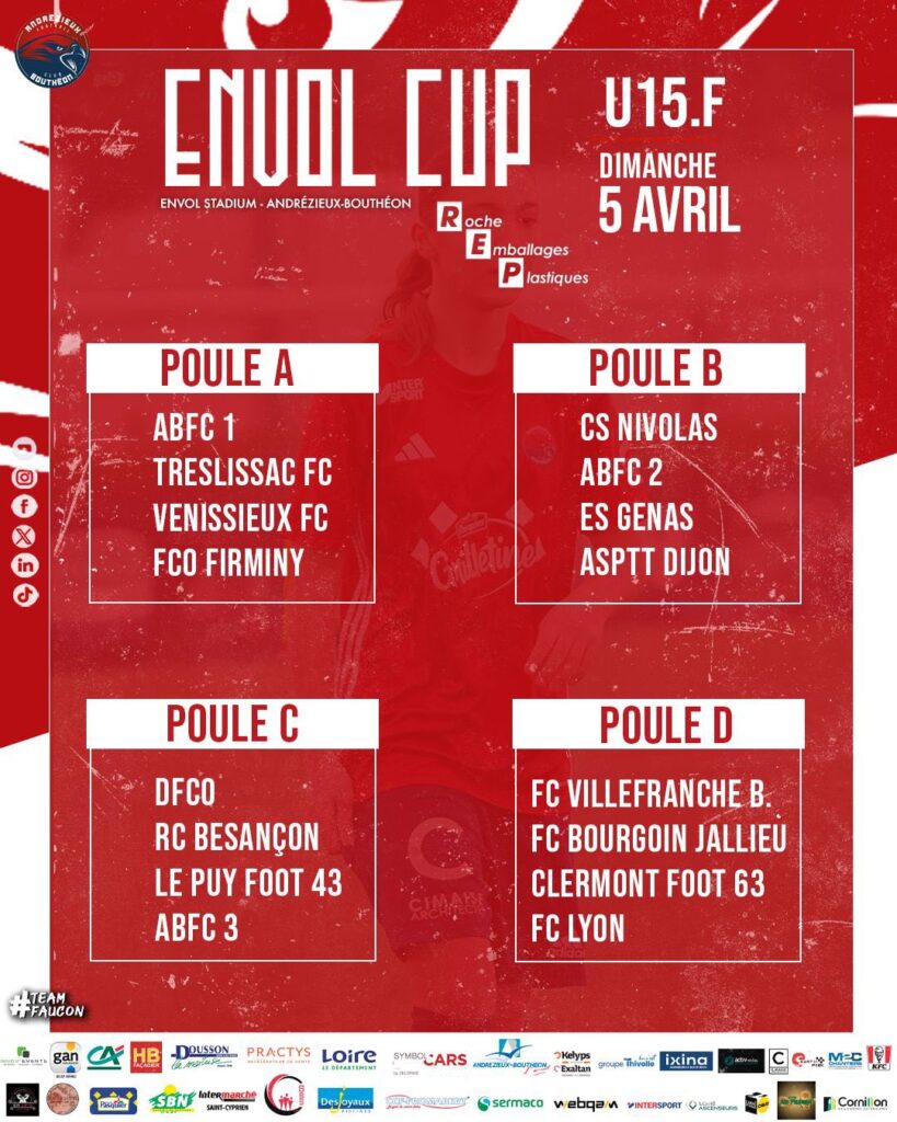 👀 Découvrez les équipes engagées ce dimanche 5 avril pour notre Envol Cup U15F ❤️‍🔥👊